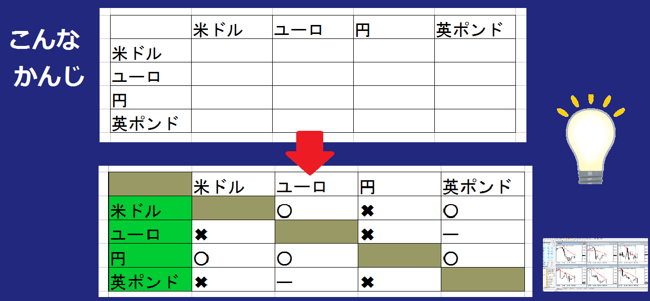 〇 通貨同士の強弱を見て、トレードする通貨ペアを決める