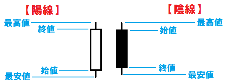 始値より終値が低いことを示す「陰線」の2つを用い