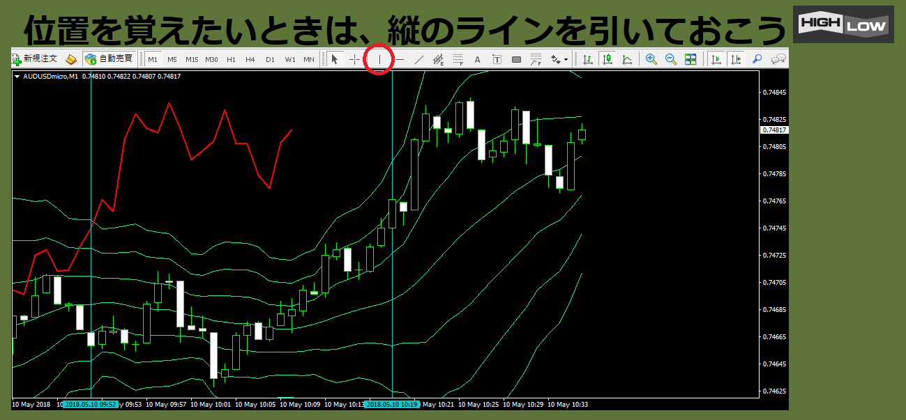 また、今回は分析しやすいように平均足ではなくローソク足を表示させています。