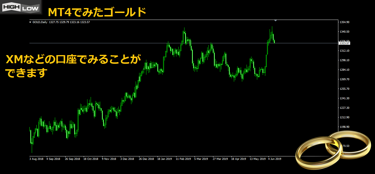 ハイローオーストラリアの銘柄のうち「GOLD」はドル建ての金価格をトレードします!