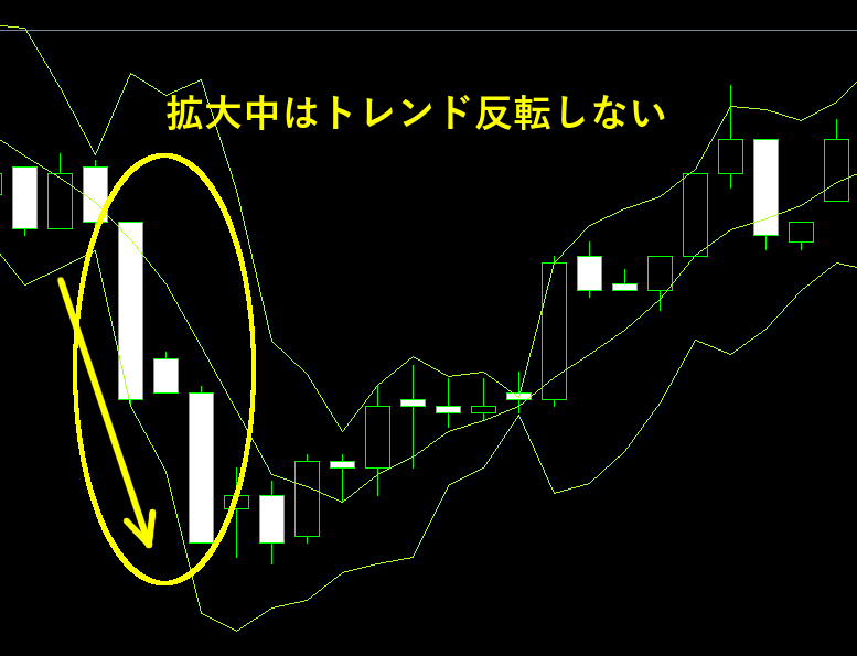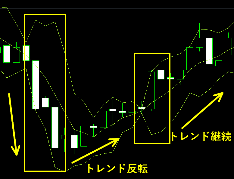 そして、それゆえに大きな動きを伴うトレンド発生のサインは実はトレンド転換にもつながりやすい、