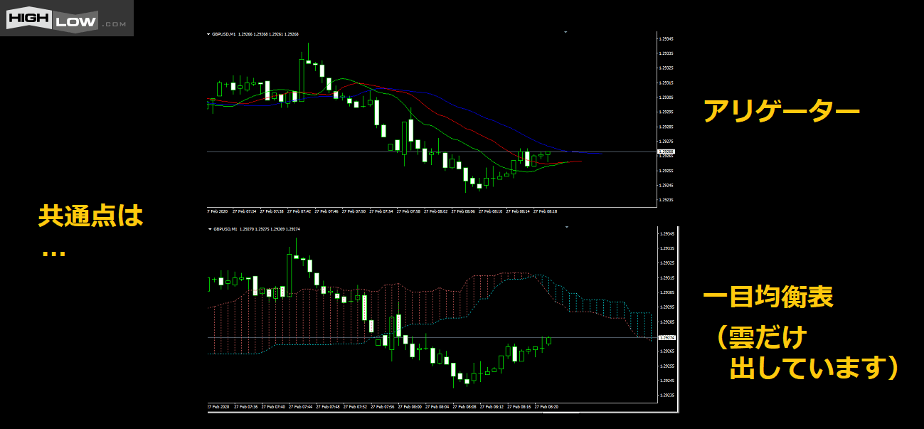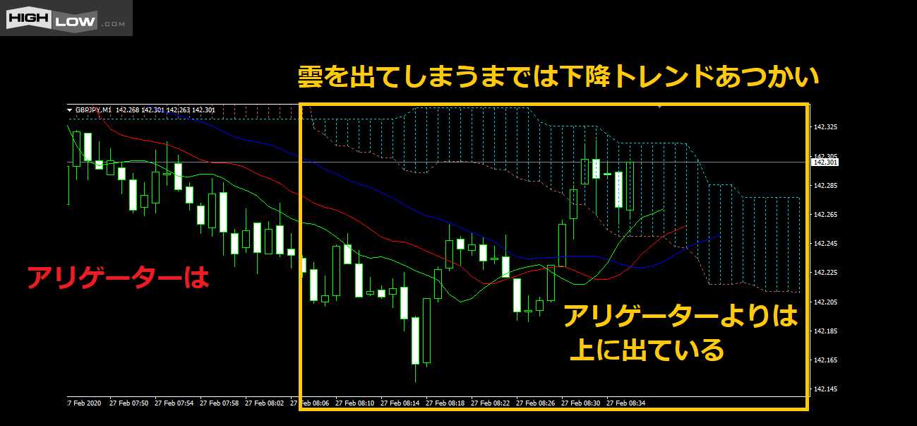 前回、アリゲーターを使うときに一目均衡表の「雲」と同じような感覚でいいですよとお話しました!