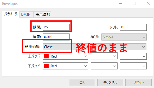 パラメータに始値(Open)を採用することで、