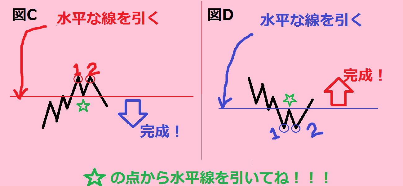 「水平な線」を突き破り、線を下に抜けていったら、「三尊がたった今、完成したぜ!」
