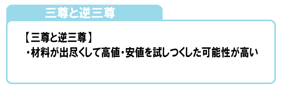 三尊は上昇相場・逆三尊は下落相場で見られる相場の転換を示すシグナルです。