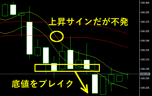反転上昇(下降)のサインを無視した動きになることが多く、いわばイレギュラーな状態です。