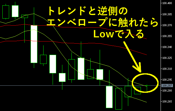 というのも、エンベロープとローソク足が大きく乖離するときは、