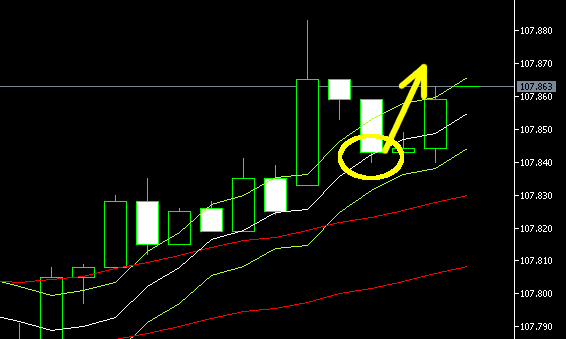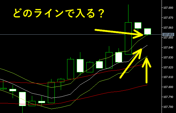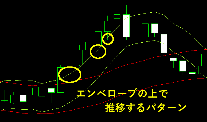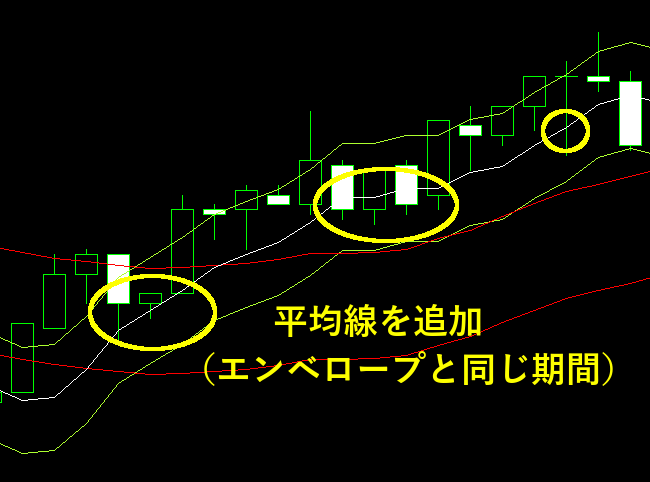 実はこの手法がエンベロープの本命なのですが、チャートが少し見にくくなることもあり、