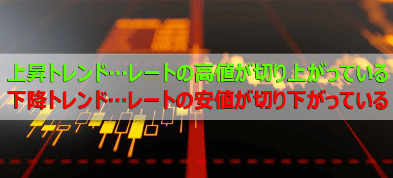 トレンド相場とはレンジ相場に対比して、相場が上昇または下落している状態のことを言います。