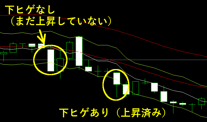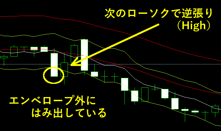 エンベロープの外にローソクがはみ出したら、逆方向にエントリーする、という単純な方法ですが、