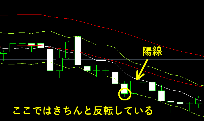 この画像では、1回目は逆張りに成功していますが、2回目は失敗です。