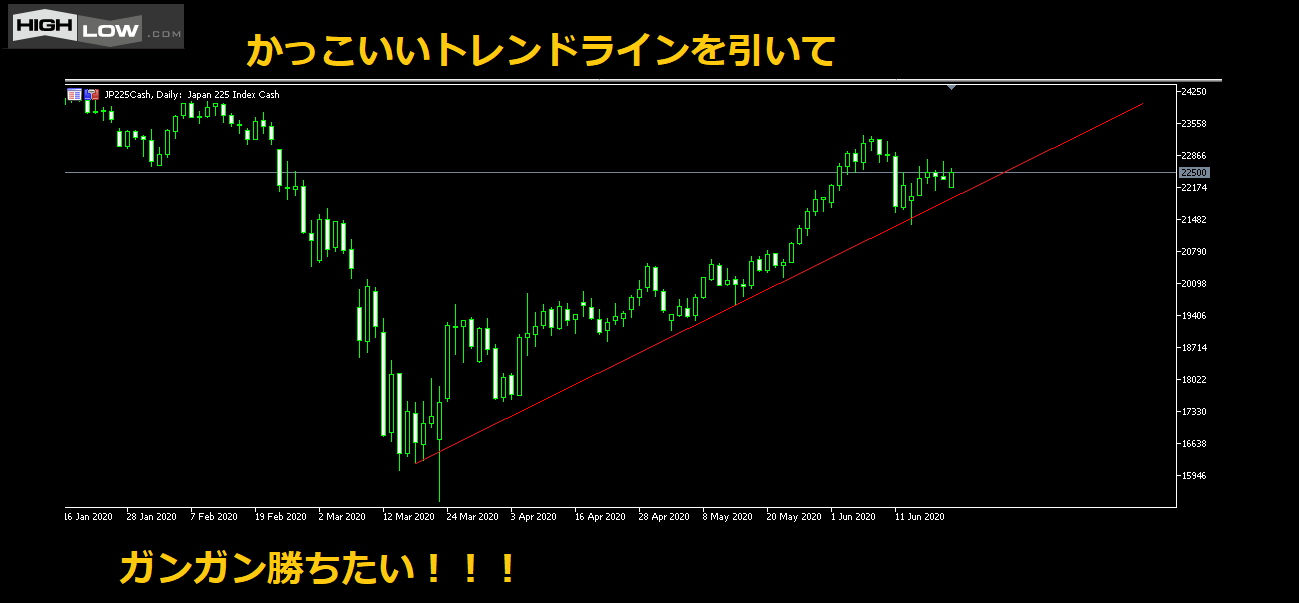 先輩トレーダーがカッコよくトレンドラインを引いて、