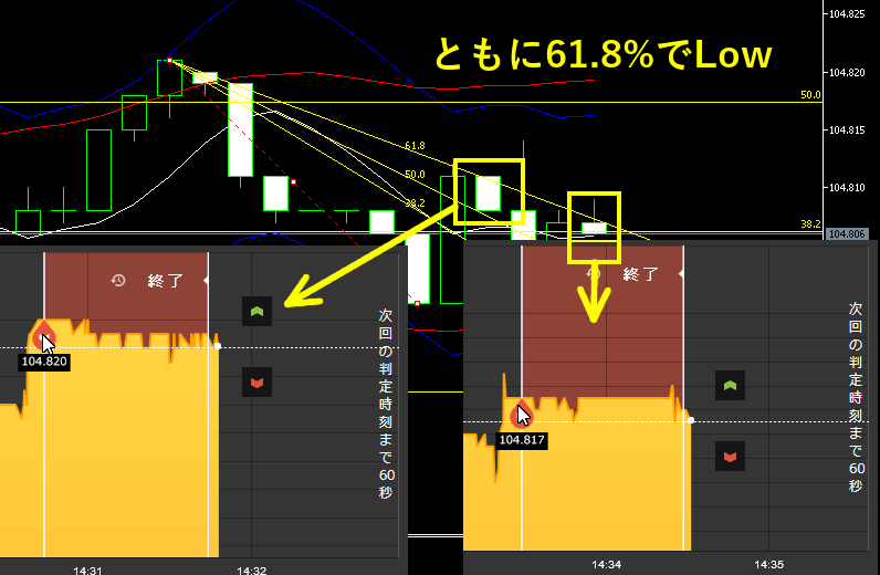 この画像の場合、38.2%と50%の間を往復する動きになっており、