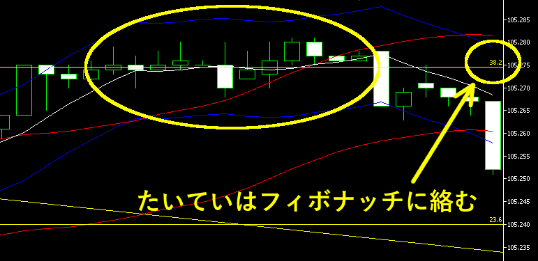 特に0~38.2%までのエリアはトレンドが強く、決め打ちで連続エントリーをしても、