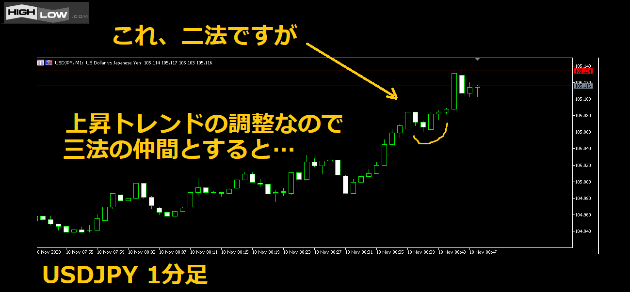 一目均衡表などでいう「N波動」の形と似ていて「そのトレンドは続く」といわれます!
