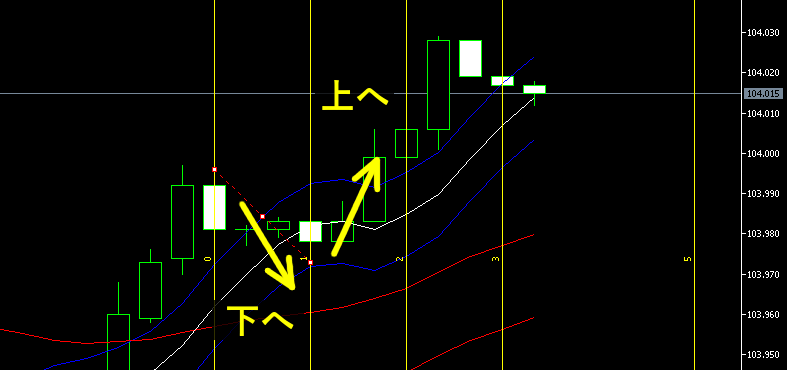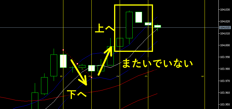 そして、次のラインを超えると、また平均線の上に回帰しています。