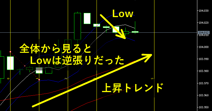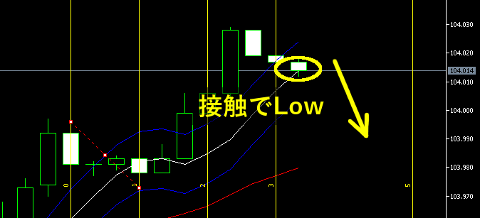 タイムゾーンのラインを超えると、平均線の下に回っています!