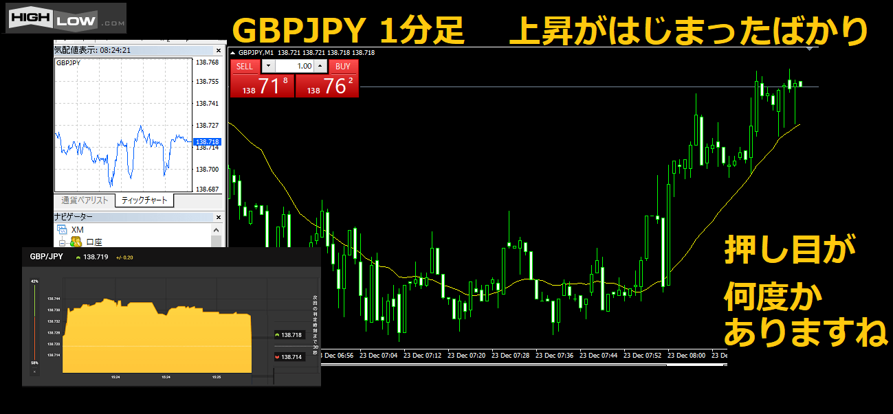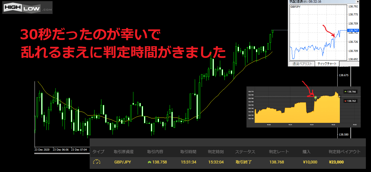 さっそくハイローオーストラリアのチャートと比べながら見てみましょう。