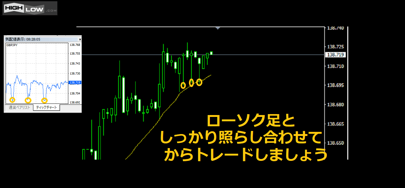前回は「見られますよ」とだけお伝えしたMT4のティックチャートですが、
