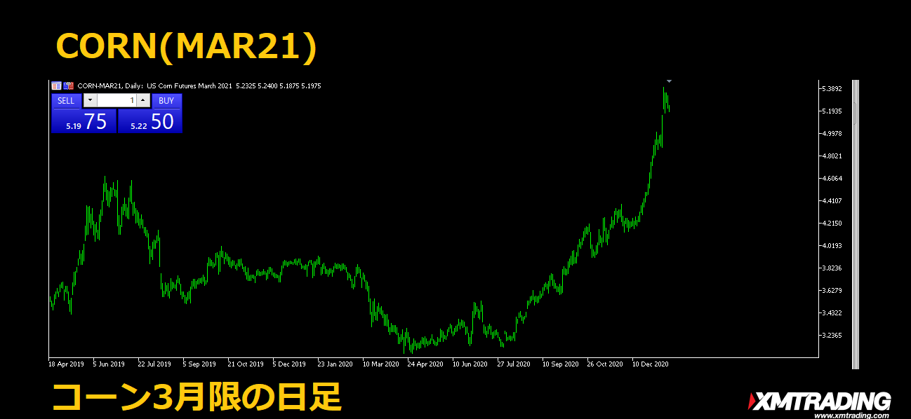 2020年の後半ごろからコーン、大豆が注目されてきました!