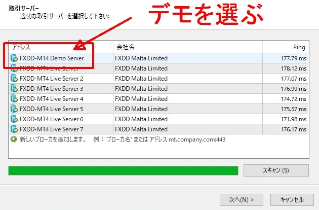XMを選択したときは、デモ用サーバーが複数あります。