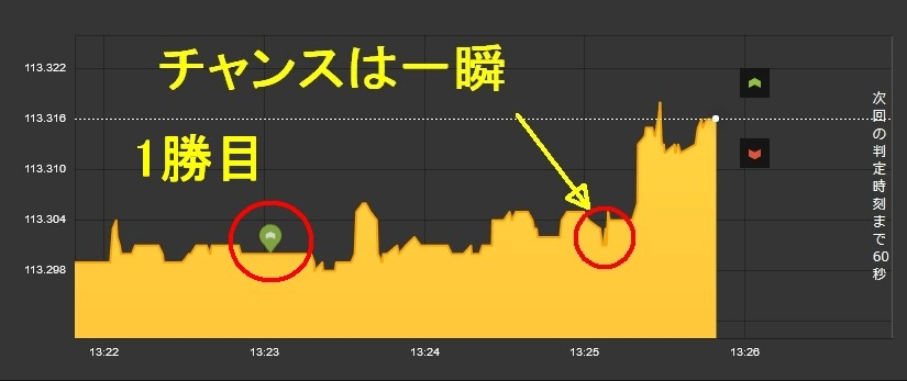 60秒など超短期トレードにおいて、エントリーのチャンスは一瞬だけ!