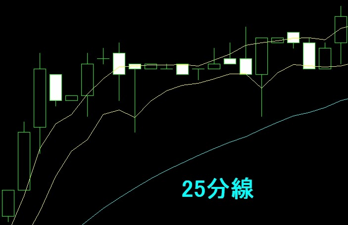次第にローソク足や5分線と、25分線が接近してきますが、