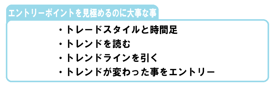 エントリーポイントは長期トレンドを確認した上で短期トレンドの動向で決めます。