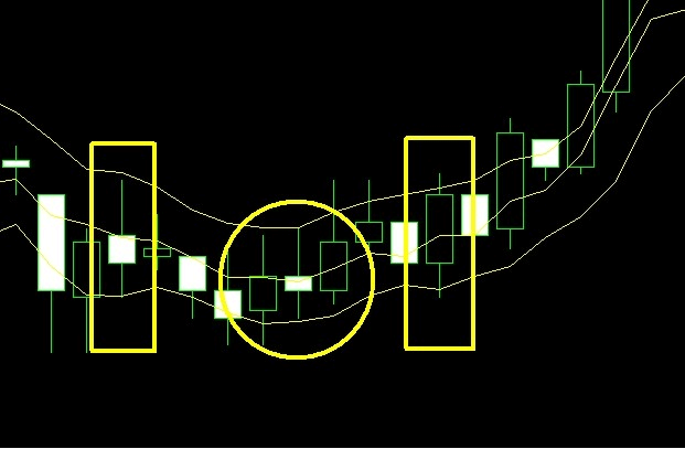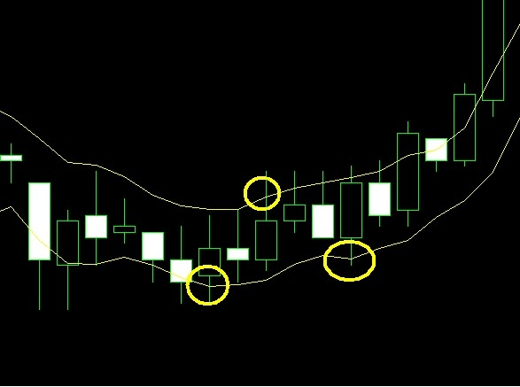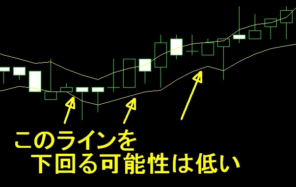ローソク足は、おおむねこのバンド内を上下に揺れ動きながら移動していきます。