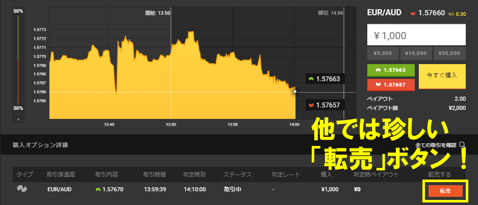 転売の機能はバイナリーオプション取引では非常に珍しい仕組みで、