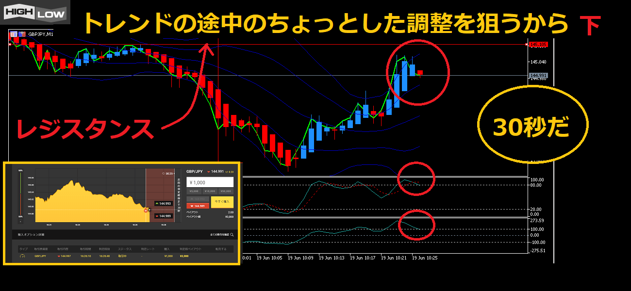 トレンドが発生していても、調整は必ずあるし、30秒という短い間だからサッと勝てたぞ!
