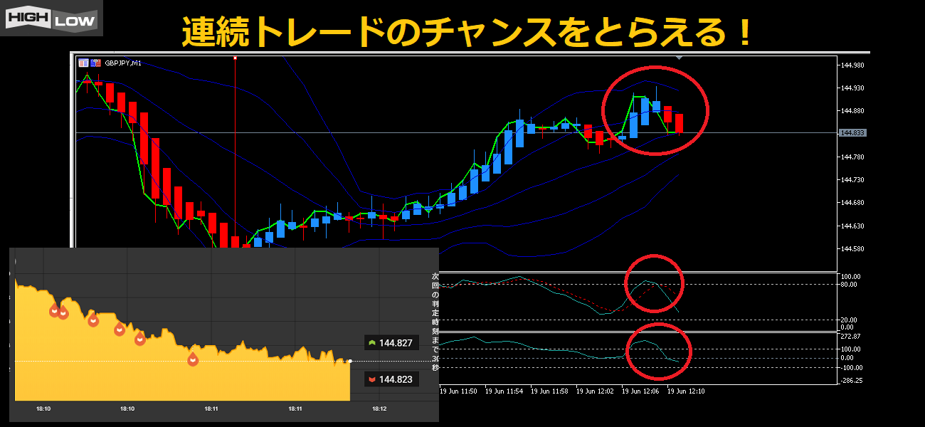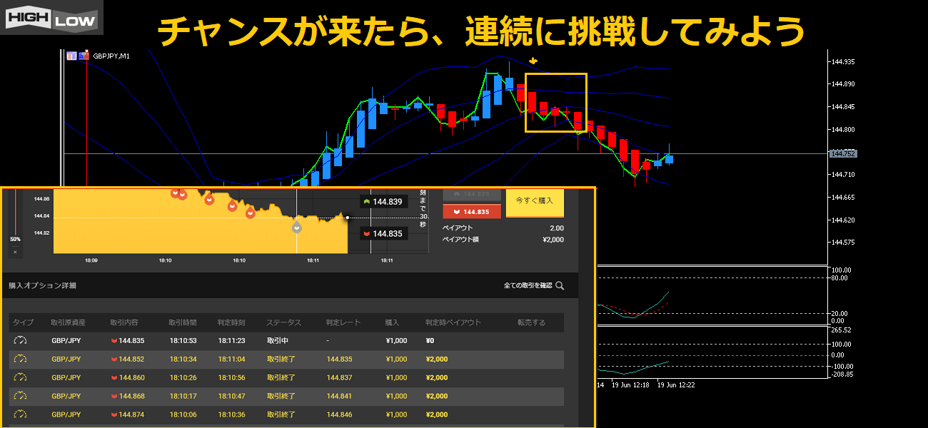 連続で買うタイミングは、ハイローオーストラリアの黄色いチャートを見るんだ。