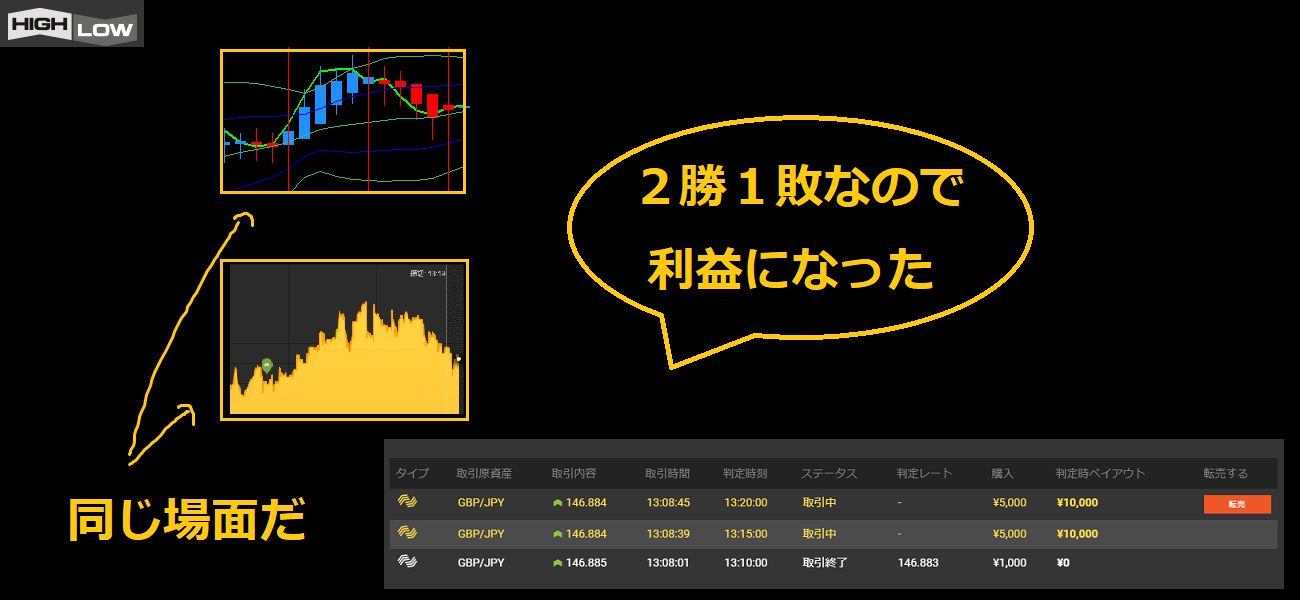 「HighLowスプレッド」の5分おきの「15分」の回。