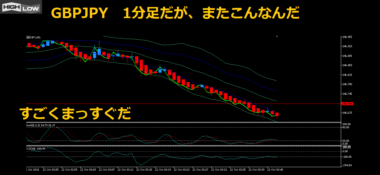 今朝ぱっと1分足を開いたら、またこんなふうにまっすぐ一方向に進んでいるな!