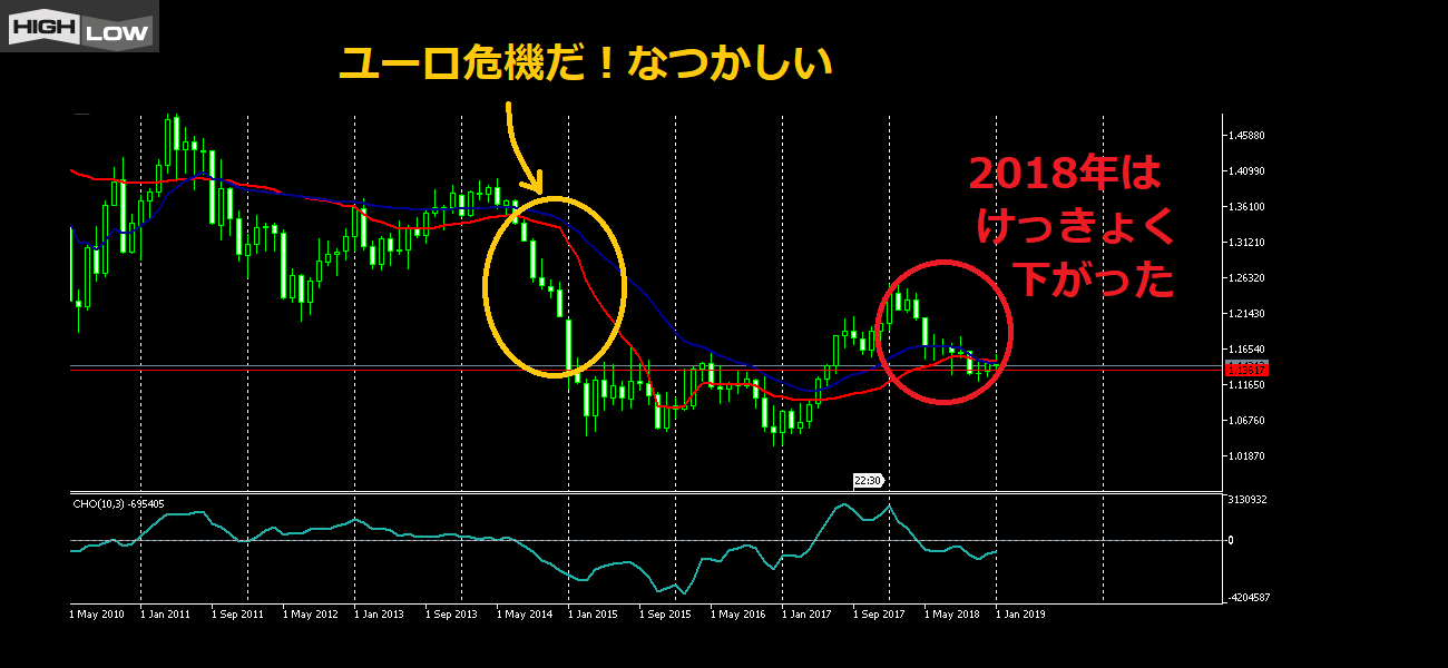 月足だが、去年2018年は下がったんだな!