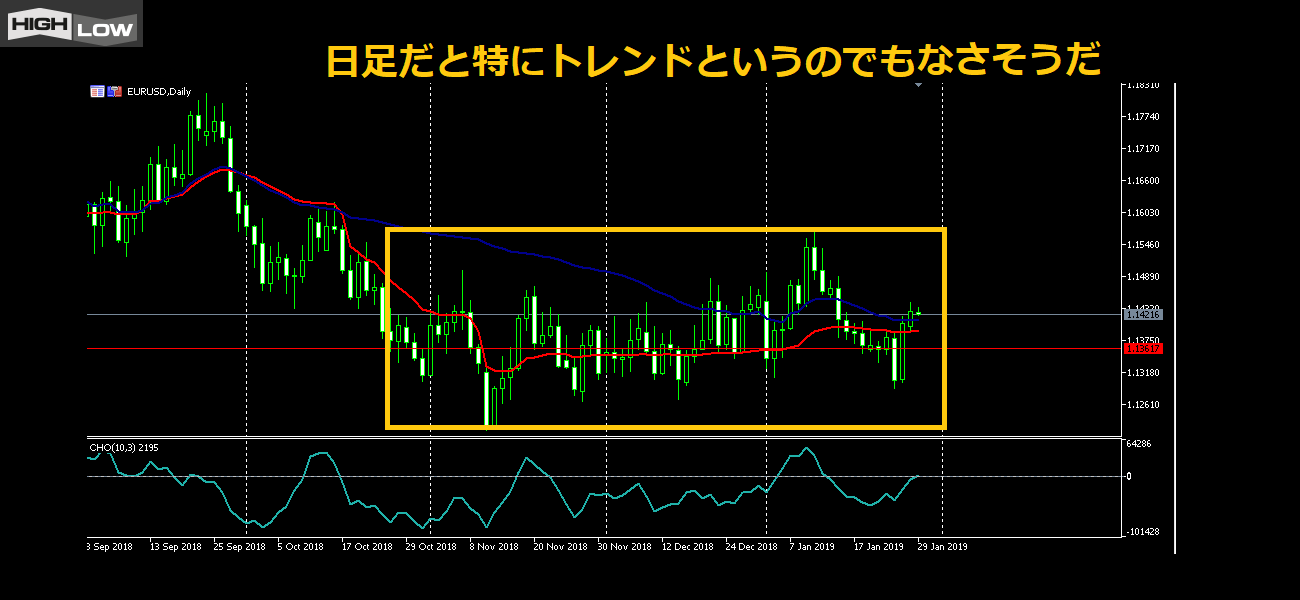 この日足ではレンジ相場になっている。