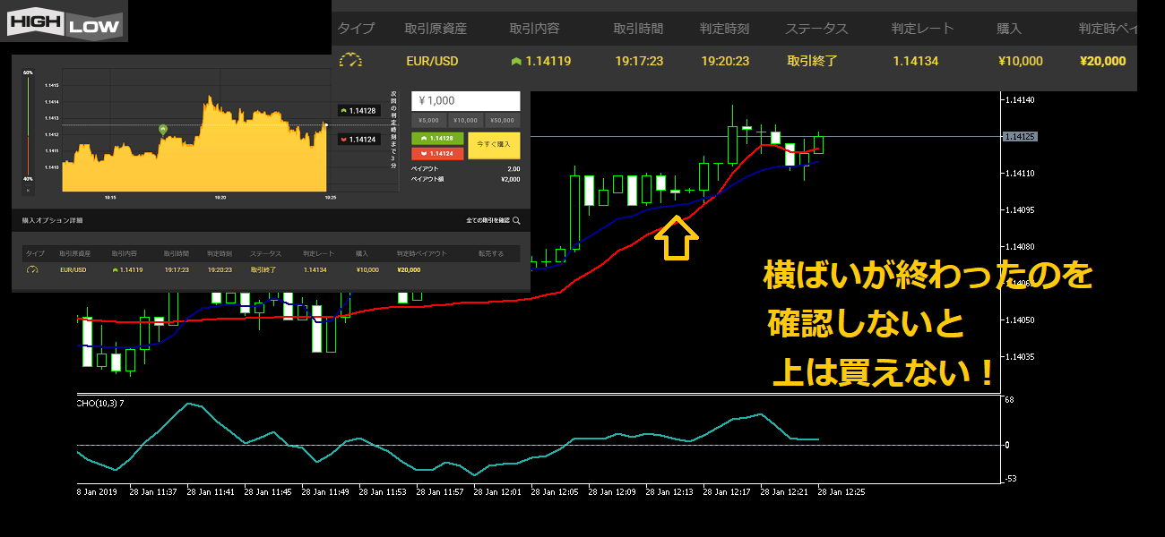 上がる確率が高いのにノイズが多そうなときは、バイナリーオプションの判定時間も長めにするんだ。
