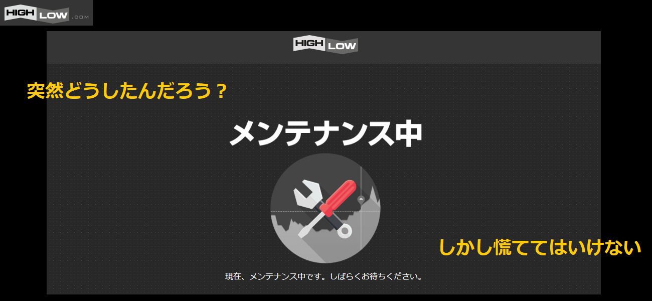 ハイローオーストラリアにログインしようとしたら「メンテナンス中」となっていた。