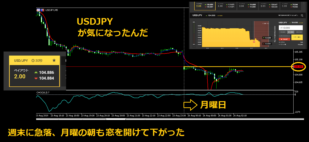 週末にはまた米中の問題があってドル/円(USDJPY)が下がったので、