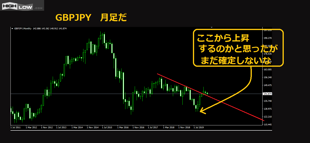 ポンド/円(GBPJPY)月足をMT5で出している!