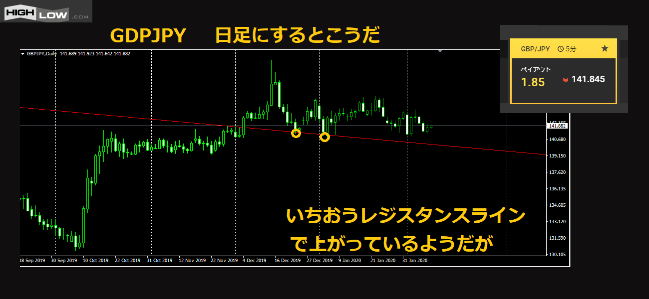 そして、いまのところレジスタンスラインからは下がっていないようだ。