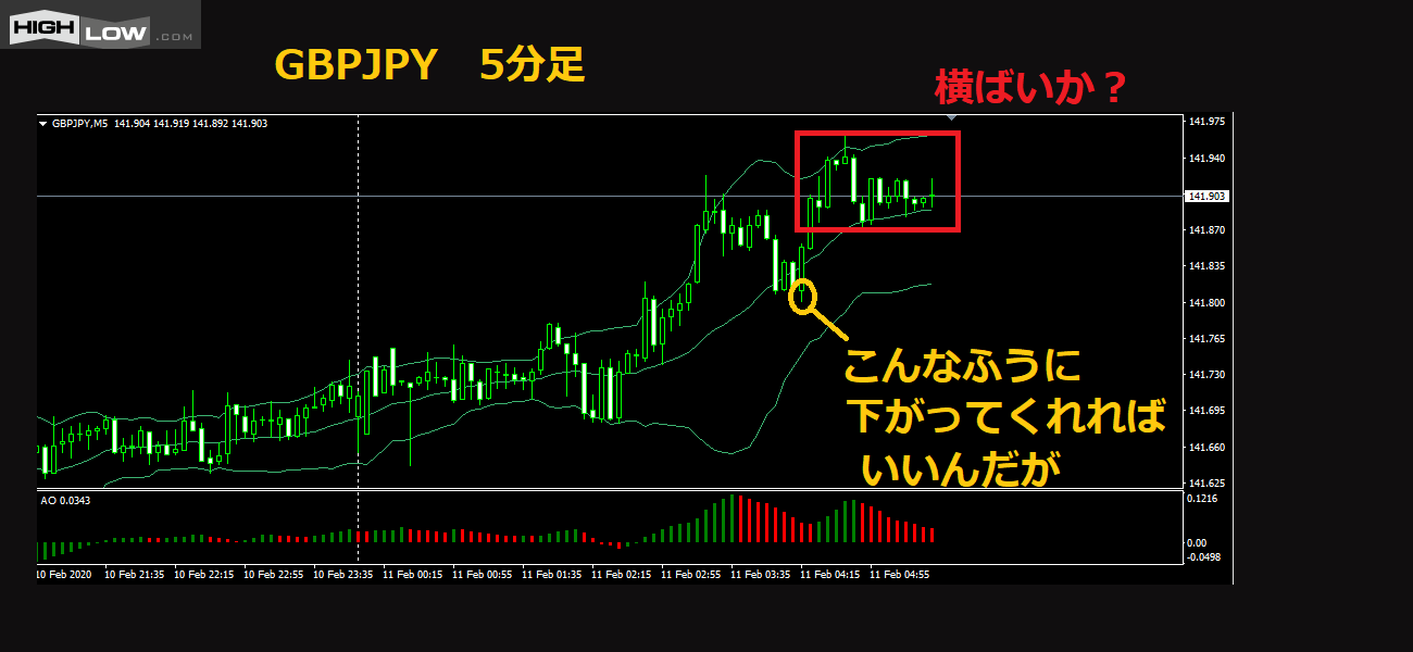 ボリンジャーバンドが狭くなったらTボーン的なハイローはできない。