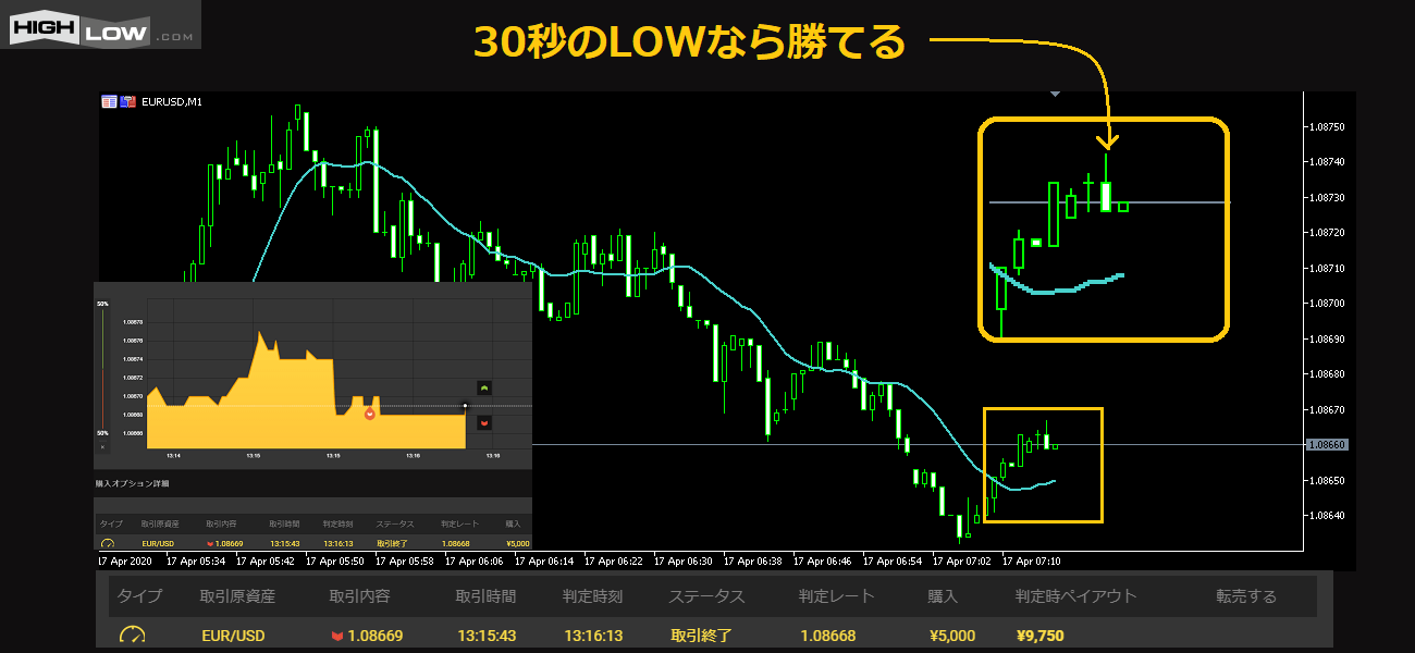 ここでいいタイミングをつかめれば、LOWを買うことができる。