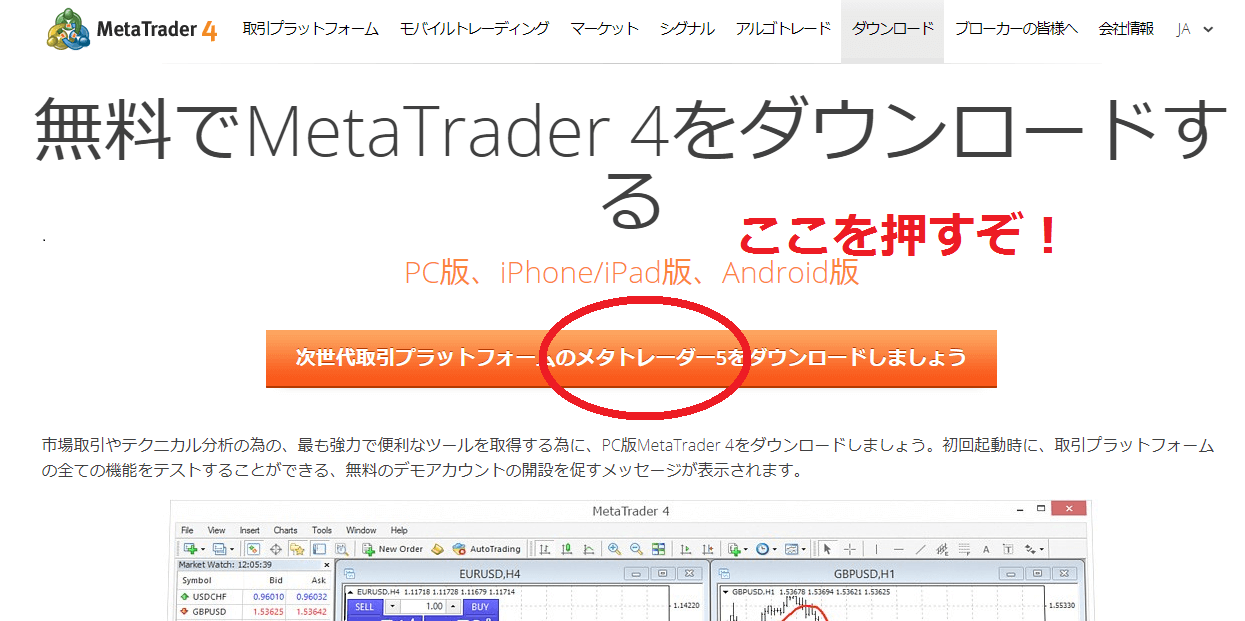 MT5はメタクオーツ社のホームページからダウンロードできるぞ!