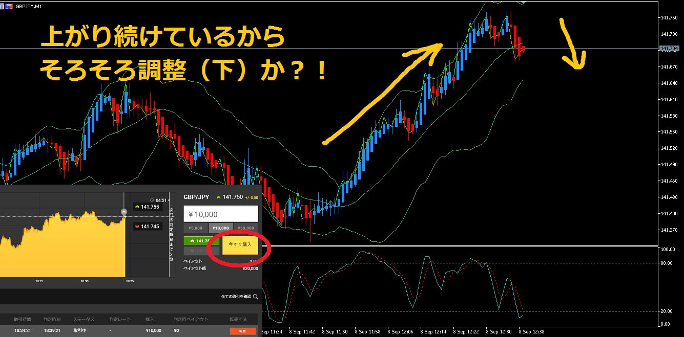 1分足を見ながら、3分か5分のバイナリーオプションをしてみようと思う!