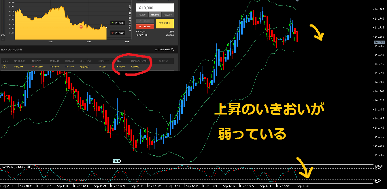 ストキャスティクスが上にあるからといって、下がると決めつけてはいけない。