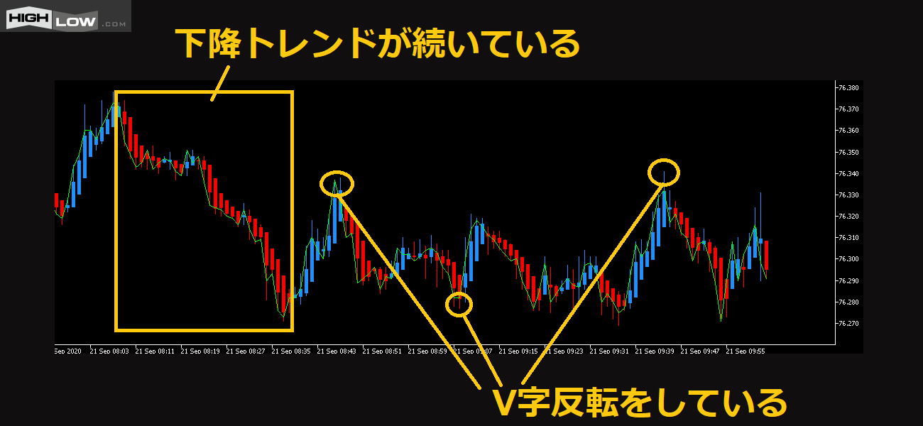 意識される価格でV字に跳ね返ったときに買うタイプのトレーダーも使えるはずだ。