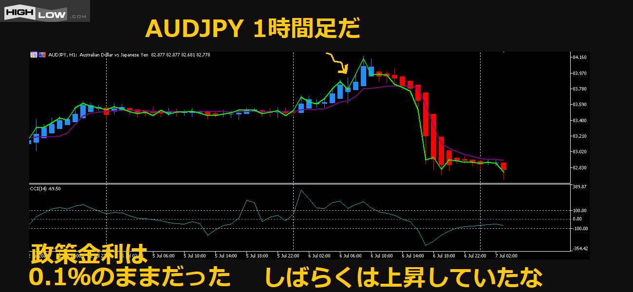チャートに矢印を描いたが、ここはオーストラリア中銀の発表の時間だったんだ。