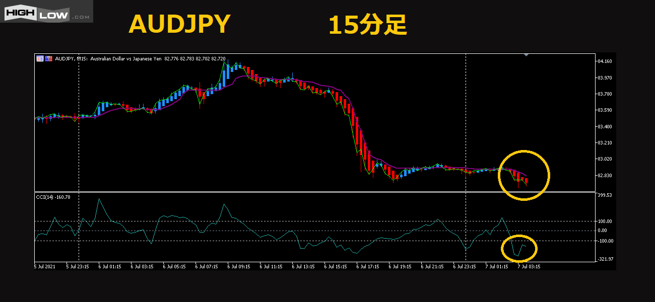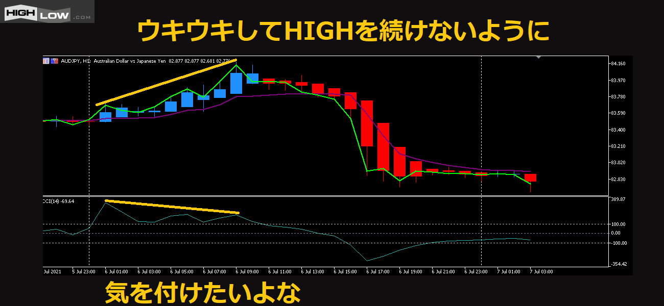 2.とうとうCCIの0ラインよりも上になってしまった。HIGHに戦略変更。