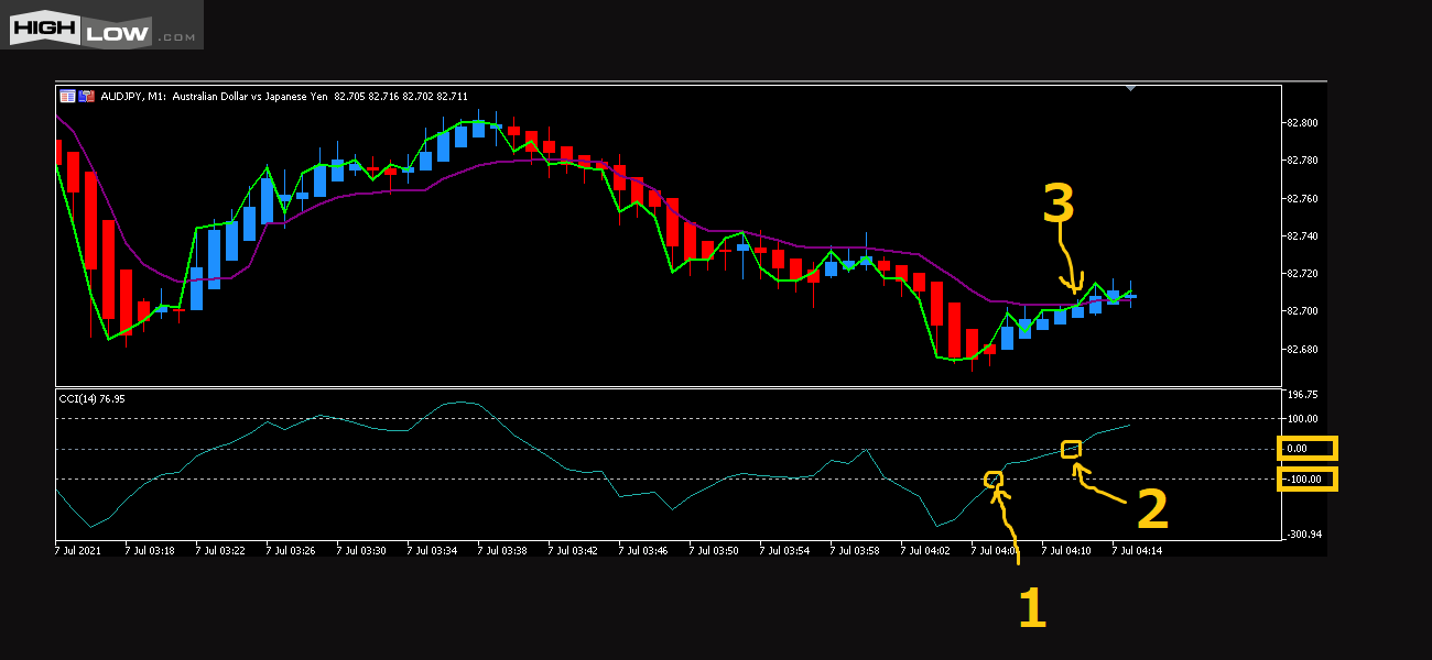1.CCIの-100より下だった。下降トレンドだったがそこを上抜けそうだ。買わない。